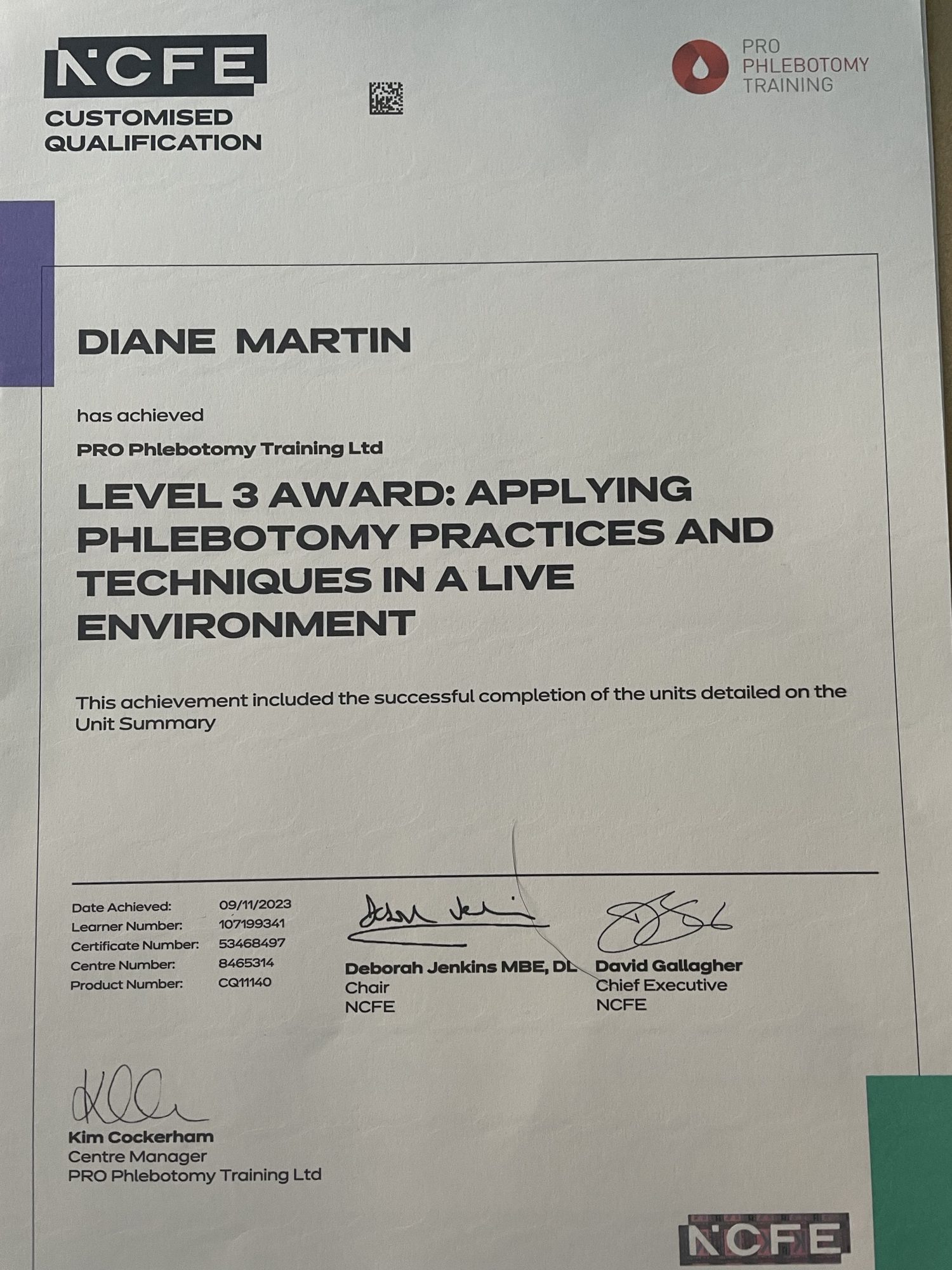 | Diane Martin | Cumbria | 1 | Certificate Competence | Certificate Attendance | More... |