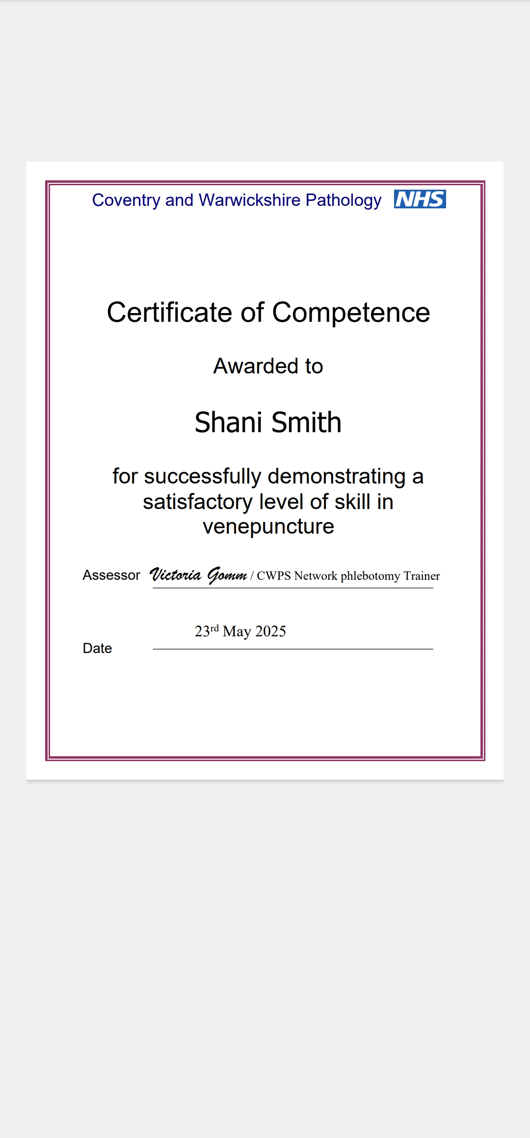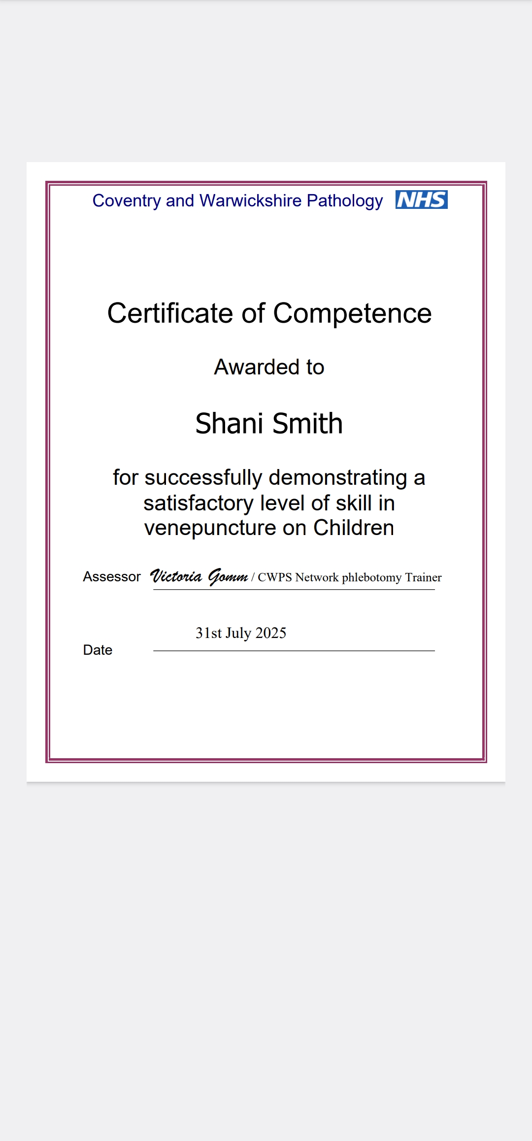 | Shani Smith | Northamptonshire | 2 | Certificate Competence | Certificate Attendance | More... |