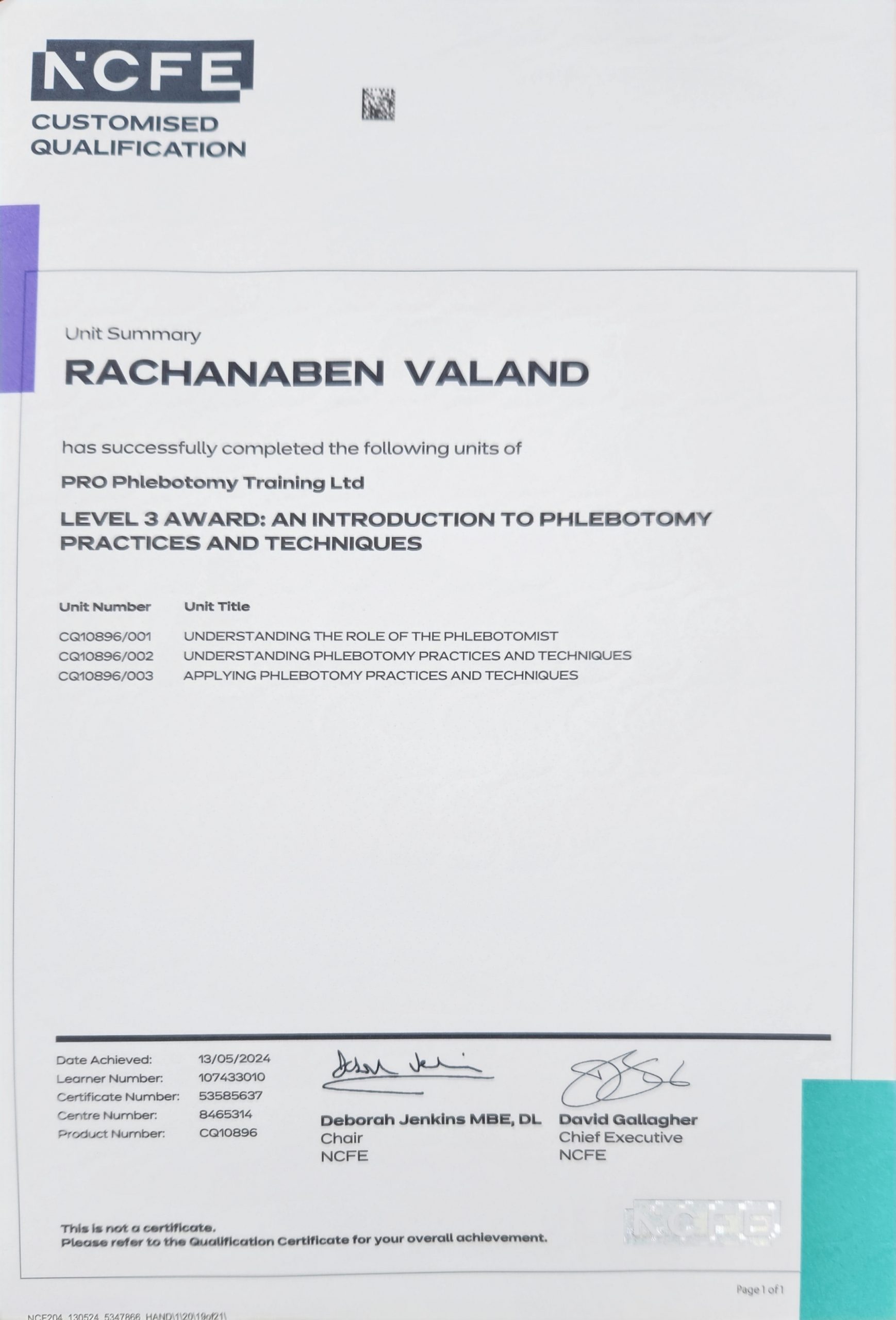 | Rachanaben Valand | Leicester | 1 | Certificate Competence | Certificate Attendance | More... |