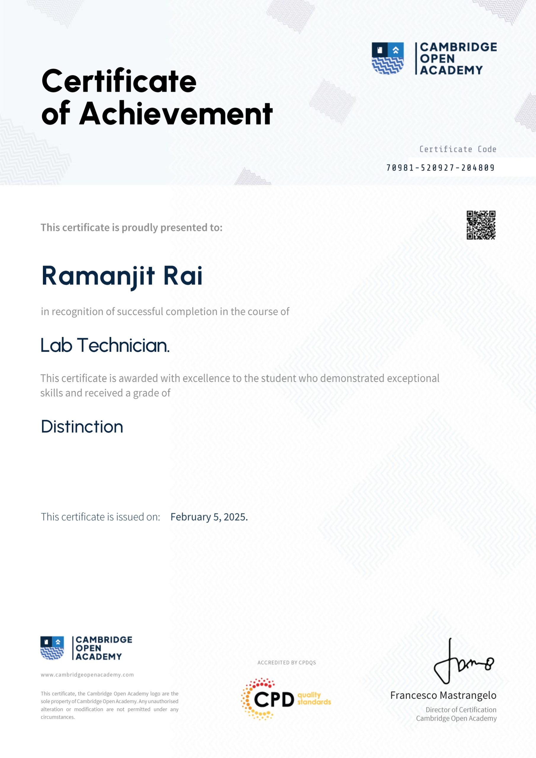 | Ramanjit Rai | London, united kingdom | 1 | Certificate Competence | Certificate Attendance | More... |