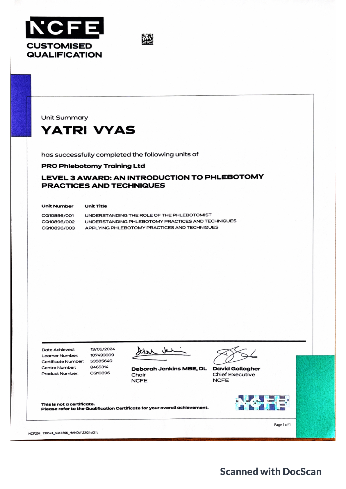 | Yatri Umeshchandra Vyas | leicester LE4 5EU | 1 | Certificate Competence | Certificate Attendance | More... |